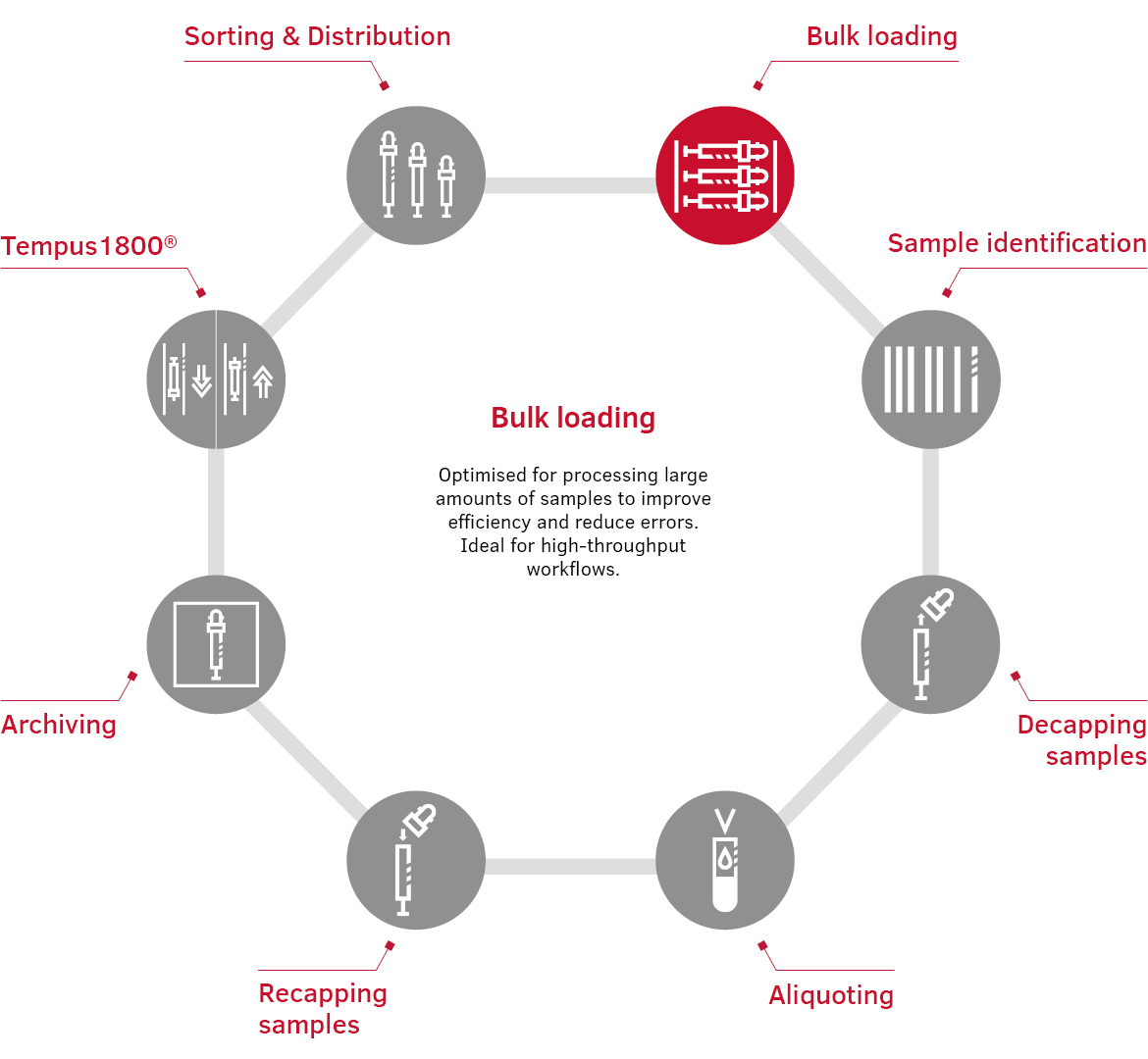 The Bulk Loader BL 1200 optimises sample handling by enabling loading of samples into a chute - eliminating the need for pre-sorting or manual insertion. It features an integrated ID module for sample identification and centrifugation status verification (Gel-Check), ensuring accurate and reliable sample processing. This system enhances throughput, reduces manual errors, and helps streamline laboratory workflows, ultimately saving time and improving operational efficiency.