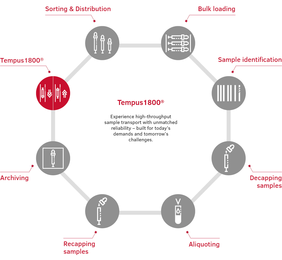 Tempus1800® uses innovative technology that revolutionizes the transport of small clinical samples in hospitals. Compared to its predecessor, the Tempus1800®, the transport range is extended to up to 1,800 meters, allowing even distant departments to be connected to the sample transport system.