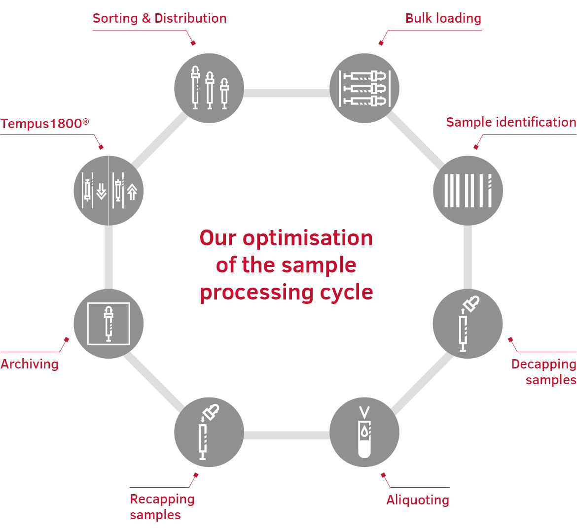 Our standalone and modular solutions guarantee maximum flexibility – tailored precisely to your requirements – and support you and your employees in gaining more time for qualitative research work! Our expertise is your excellent workflow in pre- and post-analytics.
