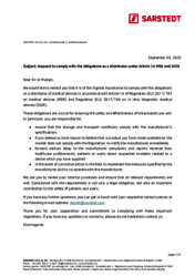 Please refer to the attached information letter for detailed information on the specific distributor obligations under the MDR and IVDR.