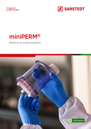 The miniPERM® is an easy-to-handle bioreactor which was developed for the cultivation of eukaryotic cells such as mammal cells, insect cells and plant cells in high density and therefore for biomass production and for the production of cell products. The sub-division of the bioreactor into production and nutrient modules and the rotating cultivation allow for the production of highly concentrated cell products in small volumes. Therefore, depending on the cell line, cell densities of more than 107 cells/ml and product concentrations of several mg/ml can be achieved. This means that the miniPERM® bioreactor is a cost-effective and time-saving alternative to conventional tissue and roller bottles and to fermentation systems.