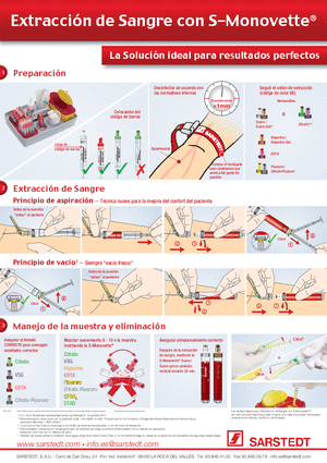 S-Monovette® - La revolución en extracción de sangre. Un sistema de extracción de sangre que combina dos técnicas de extracción: técnica de aspiración y vacío. La S-Monovette® es adecuada para todo tipo de venas y ofrece muestras de calidad para obtener los mejores resultados analíticos. La técnica de aspiración es una técnica de extracción delicada para extracción de sangre. Con la técnica de vacío se crea siempre un vacío "fresco". Adecuado para todas las edades, la S-Monovette® es tan individual como sus pacientes.