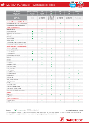 En la tabla siguiente se indica la compatibilidad de todos los cicladores habituales con nuestra gama de placas PCR.