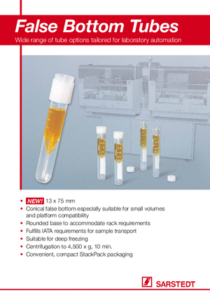 En principio, en los productos de PP los valores de resistencia se reducen a temperaturas bajo cero y por consiguiente se debe procurar no someter los tubos congelados a cargas mecánicas especiales (p. ej. no deje caer los tubos de la mesa). Se deben elegir condiciones de congelación que permitan que el contenido se congele uniformemente o de abajo a arriba. Si debido a condiciones de congelación desfavorables el recipiente se congela primero en la parte superior, pueden producirse grietas de expansión en la parte inferior. Por ejemplo, en función del diámetro de los orificios, las gradillas de poliestireno tienen un fuerte efecto aislante que dificulta el congelado uniforme de los tubos. En principio, los tubos introducidos en una gradilla o en una caja de almacenamiento deben disponer de suficiente holgura para poder expandirse. Debido al gran número de factores que pueden influir en la congelación, le recomendamos que haga una prueba con sus condiciones de rutina.