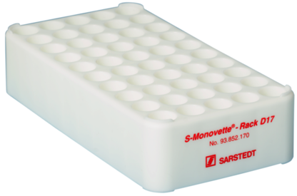 | Description d'article | Block Rack D17, pour 50 récipients, Ø orifice : 17 mm, format : 5 x 10, blanc crème, matériau : PP recyclé |