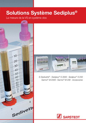Les accessoires pour les systèmes automatisés de mesure de la vitesse de la sédimentation sanguine Sediplus® S 100 et S 2000 ainsi que les portoirs VS manuels pour la détermination de la VS et les agitateurs spéciaux M 200 et M 2000 complètent la large gamme de produits dans le domaine de la mesure de la vitesse de sédimentation sanguine.