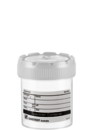 Pot de recueil des urines, volume de travail max. : 90 ml, (Ø x h) : 60 x 65 mm, Ø orifice : 65 mm, transparent, gradué(e), matériau : PP, bouchon à vis, avec étiquette papier, bouchon assemblé, stérile, 400 pièce(s)/carton