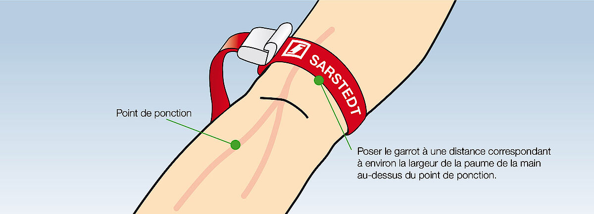 Poser le garrot à une distance correspondant à environ la largeur de la paume de la main au-dessus du point de ponction.