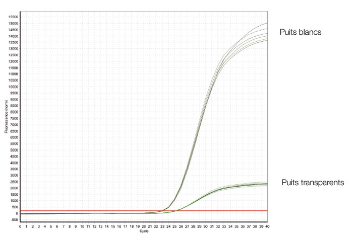 Comparaison du niveau de fluorescence de puits blancs et transparents