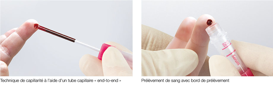 Il est possible de réaliser un prélèvement de sang capillaire à l’aide d’un tube capillaire « end-to-end » ou du bord de recueil.