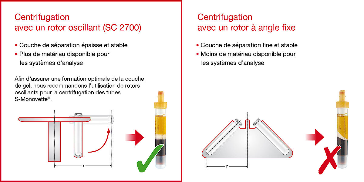 À l’inverse d’un rotor à angle fixe, la centrifugation à l’aide d’un rotor oscillant permet d’obtenir une couche de séparation homogène. Cette barrière de diffusion garantit une stabilité précise des échantillons et la présence d’une plus grande quantité de matériau pour les systèmes d’analyse.