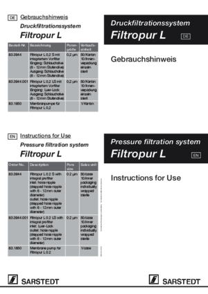 Pressure filtration system Filtropur L Pressure filtration system Filtropur L Langues: GB 93 [pdf, 77 Ko] file_download
