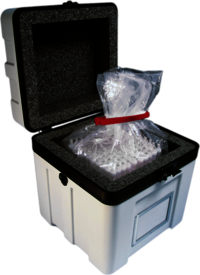ザルスタットのメーリングコンテナ―のほとんどが輸送容器として利用出来ます。コンテナ自体の密閉度の高さ、同封のフォームバッグを、2次容器用の固定と緩衝剤として使用することが出来ます。