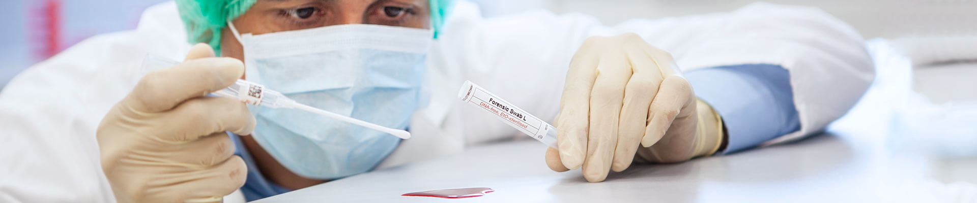 フォレンシックスワブは、犯行現場における鑑識サンプルやDNA痕跡の採取に使用されます。チューブ底部の通気性膜により、スワブはチューブ内で自然に乾燥します。科学捜査用に特別に開発されたEtO殺菌プロセスと、高レベルでクリーンな製造過程により、DNAフリーが保証されています。