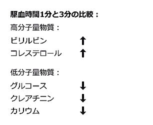 高分子量物質は毛細血管壁を通過できないため、血中濃度が上昇します。一方で低分子量物質の濃度は減少します。