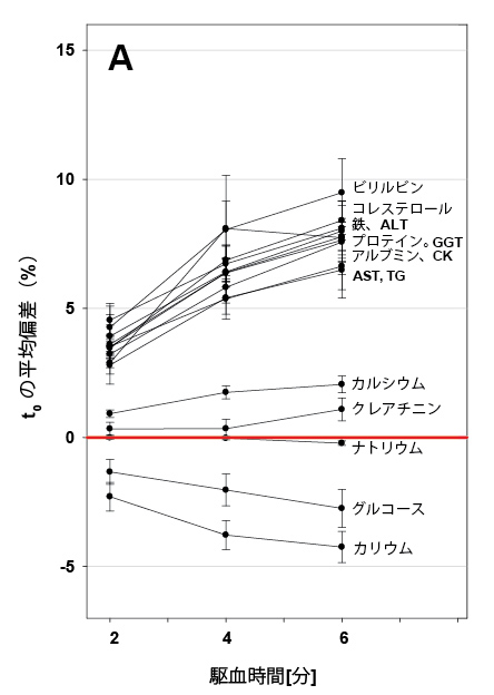 1分を過ぎるとほとんど全ての測定値が変化してしまうからです。測定結果が高すぎる、または低すぎる値になる おそれがあります。