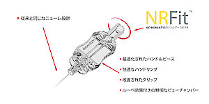 NRFit製品とルアー製品を明確に区別するため、新しいロゴに加え、梱包および製品に付けられた黄色いマークでも識別できるようになっています。これにより迅速に他の使用領域と区別し、局所麻酔の部品として識別できます。