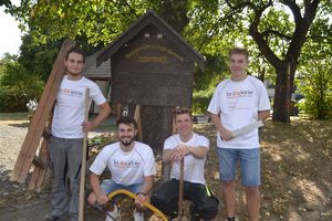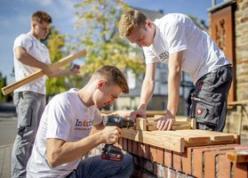 Ein Teil von ihnen engagierte sich am Dorfhaus des gemeinnützigen Vereins Benroth, wo sie u. a. eine vorhandene Bekanntmachungstafel erneuert und einbetoniert haben. In dem christlichen Schüler- und Jugendcafé „Alte Schmiede“, in dem eine weitere Gruppe unserer Auszubildenden tätig war, wurden mobile Sitzgelegenheiten aus Holz gebaut und ein Stück Holzfassade neu gestrichen. Die größte Gruppe der Auszubildenden hat im Haus für Menschen mit Behinderung (HBW) gemeinsam mit den Bewohnern die Außenanlage der Einrichtung erneuert und verschönert.