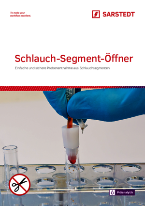 Der Schlauch-Segment-Öffner (S-S-Ö) stellt für das Kreuzprobenlabor eine erhebliche Verbesserung hinsichtlich Sicherheit und Hygiene dar. Das Öffnen eines Schlauchsegments von einer Blutbeutelkonserve muss nicht mehr mit Hilfsmitteln wie Messer oder Schere etc. erfolgen. Bei dieser Arbeitsweise entsteht ein hohes Verletzungs- und Kontaminationsrisiko. Der S-S-Ö eliminiert diese Gefahren durch die einfache und praktikable Anwendung.