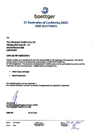 Urin-Becher, max. Arbeitsvolumen: 90 ml, (ØxH): 60 x 65 mm, Ø Öffnung: 65 mm, transparent, graduiert, Material: PP, Schraubverschluss, mit Papieretikett, Verschluss montiert, steril, 400 Stück/Karton