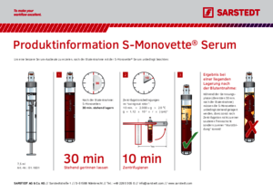 Für optimale Serumqualität empfehlen wir, die S-Monovette® Serum / Serum-Gel mindestens 30 Min. aufrecht stehend zu lagern und erst dann zu zentrifugieren.