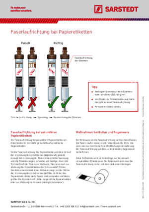 Um eine gleichmäßig ausgebildete Trennschicht zu erzielen ist darauf zu achten, dass die Zentrifugation in einer Zentrifuge mit Ausschwingrotor erfolgt. Die Serum-Gel S-Monovette® ist bei 2.500xg 10 Min. und die Plasma-Gel S-Monovette® bei 2.500xg 15 Min. oder 3000xg 10 Min. jeweils bei Raumtemperatur zu zentrifugieren.