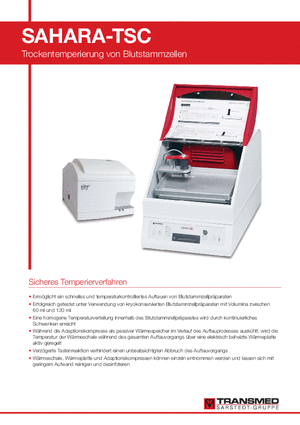 SAHARA-TSC 115 V, zum Auftauen und Erwärmen von in Kunststoffbeuteln abgefüllten Blutprodukten vor der Transfusion, geeignet für kryokonservierte Stammzellen, inkl. Adaptionskompresse und Wärmeschale
