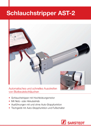Durch die Verfügbarkeit verschiedener Ausführungen und der Verwendung eines Motorantriebs bietet unser Blutbeutel-Schlauchstripper AST-2 einen sehr hohen Anwenderkomfort. Er ist nicht nur als Hand- und Tischgerät verfügbar, sondern auch mit Netz- und Akkubetrieb.