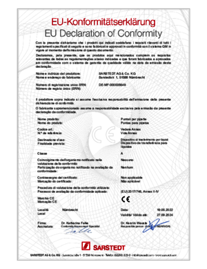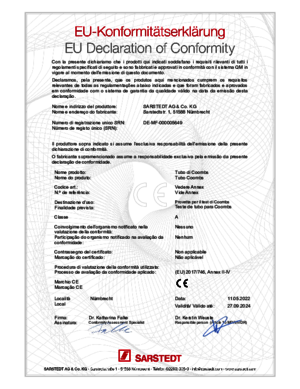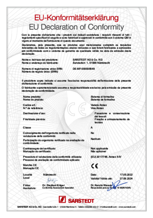 A Declaração de Conformidade da UE é um pré-requisito obrigatório para a marcação CE e colocação do produto correspondente no mercado no Espaço Econômico Europeu.
