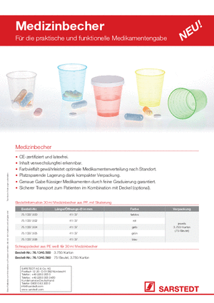 Urine container, max. working volume: 75 ml, (ØxH): 65 x 48 mm, transparent, graduated, material: PP