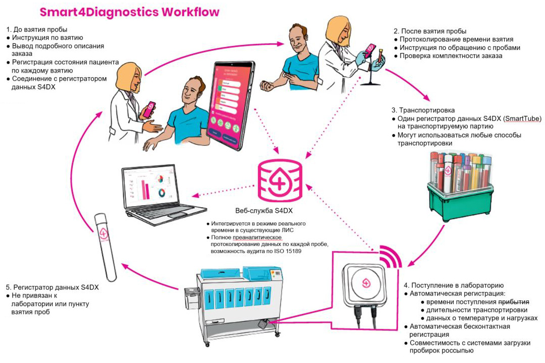 Параметры транспортировки проб в лабораторию, такие как температура, вибрация и продолжительность, строго контролируются цифровыми средствами. Передача данных в лабораторную информационную систему (ЛИС) осуществляется автоматически при поступлении проб в лабораторию.
